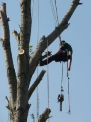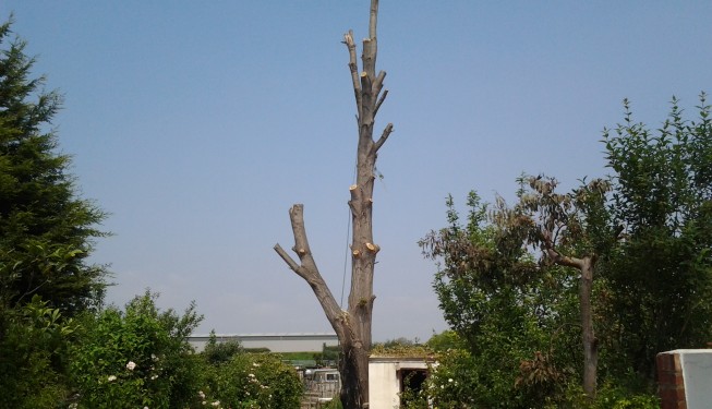 A large Poplar tree had to be brought down because previous owners had a fire right at the base of the tree and badly damaged it. After some while the damage only got worse and eventually being threat to residents and property, it had to come down.It took 4 days to dismantle the tree. Being up the top of the tree was indeed uneasy and scary as it only had 2/3 of the trunk at t he base to rely for support on.