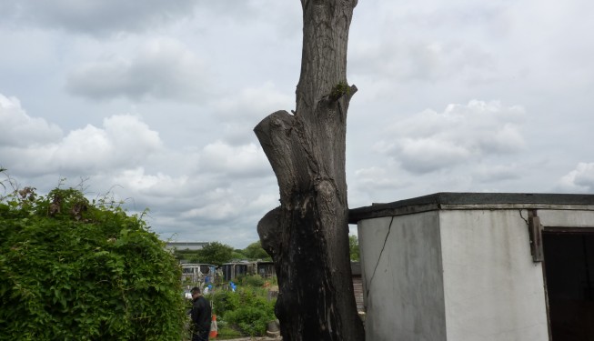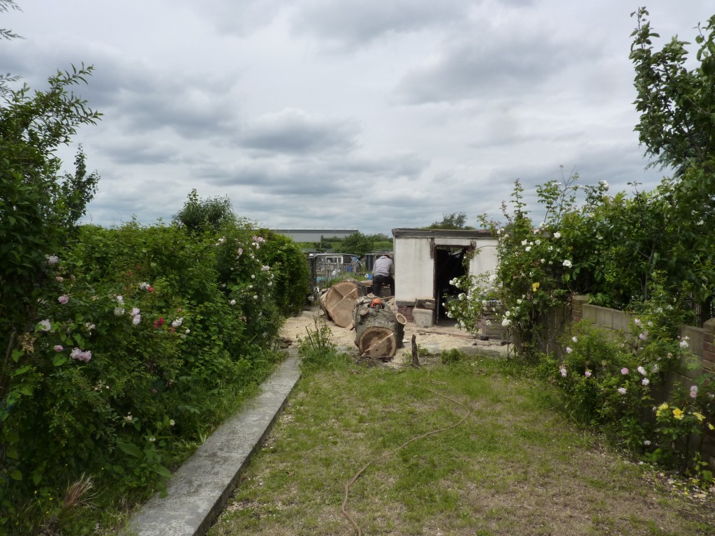 As the tree was removed the shabby old shed could be rebuilt and another smaller tree was later planted as a replacement.